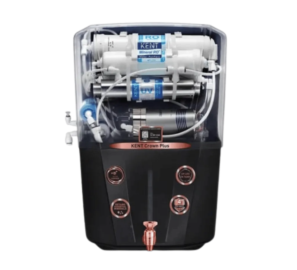 The Kent Crown Plus is a wall-mounted RO water purifier that uses multi-stage purification technology to make drinking water clean, safe, and healthy. It’s suitable for tap water, municipal water sources.